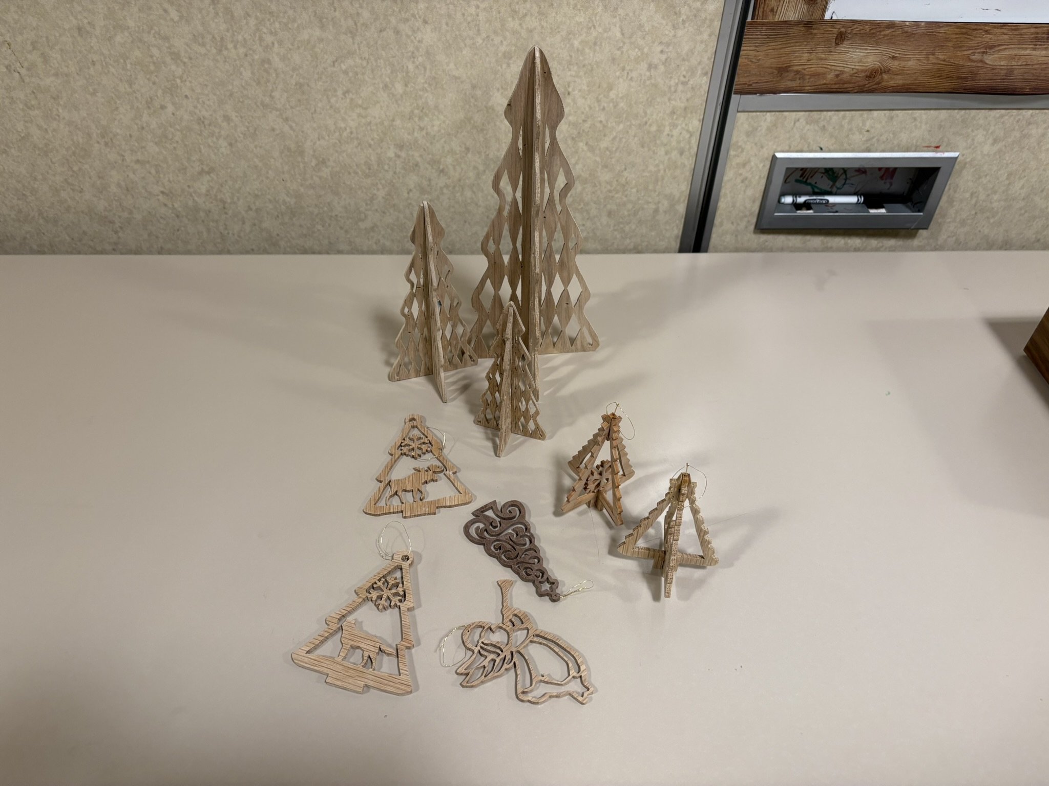 Christmas Tree Ornaments - Black walnut original pattern. Coping saw then resaw with bandsaw to get two alike