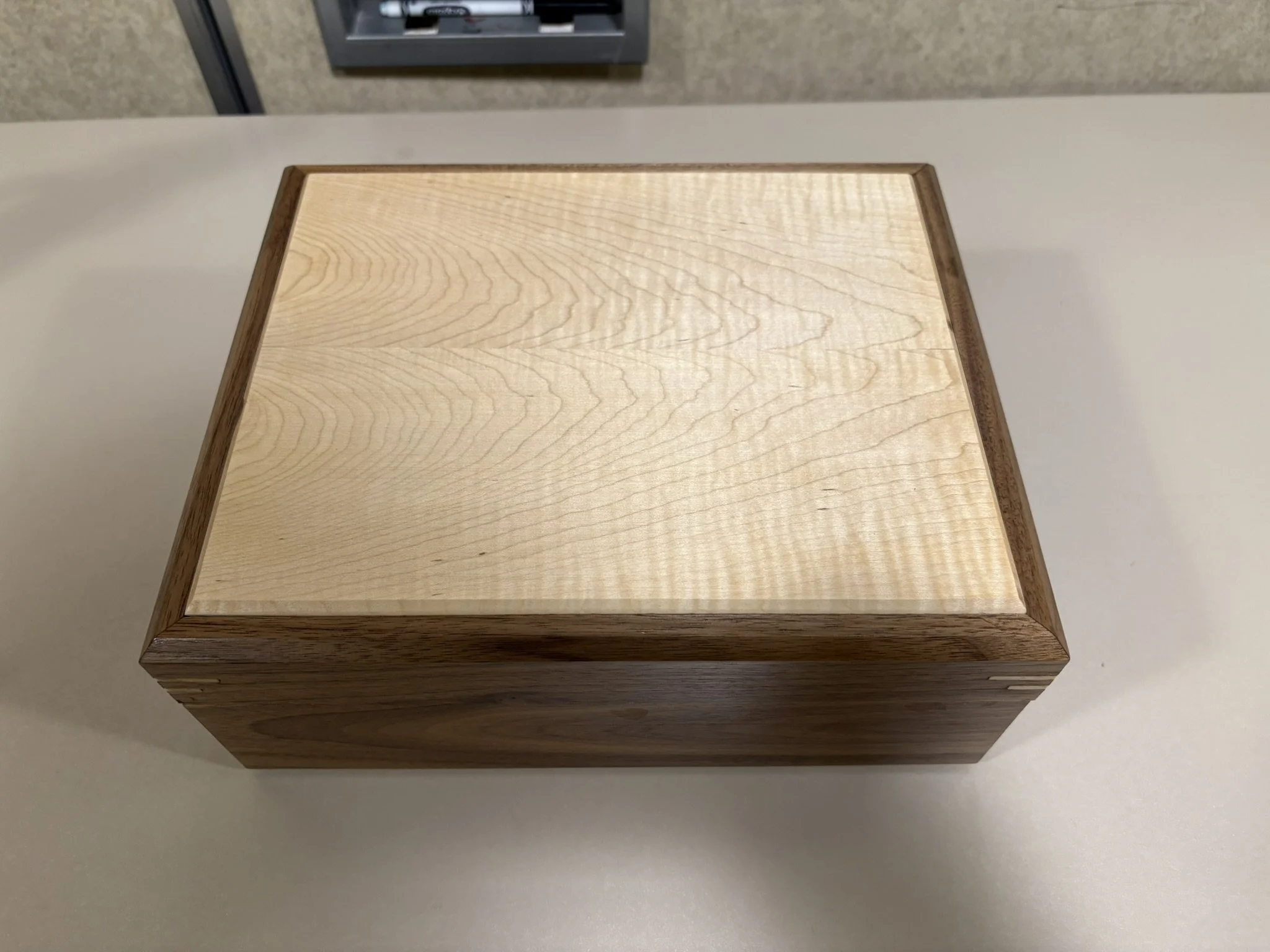 Log Cabin Box & Box Joint Jig - I mad this jig in one of our classes and used it to make the joints for the box. Box in Walnut and Birds-Eye Maple